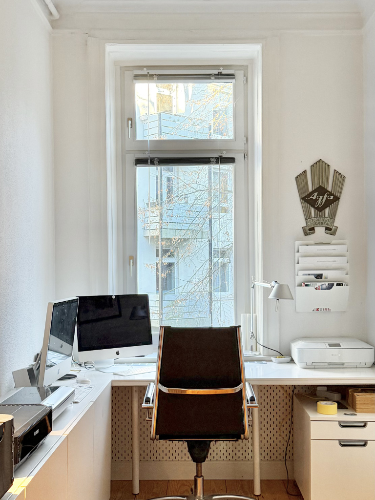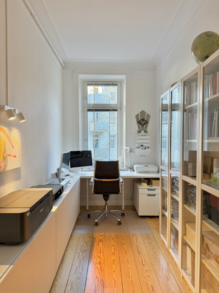 Im hinteren Teil der Wohnung, zum Innenhof, liegen nebeneinander die Küche und ein kleines Arbeitszimmer, welches auch als Kinder- oder Gästezimmer genutzt werden kann.
