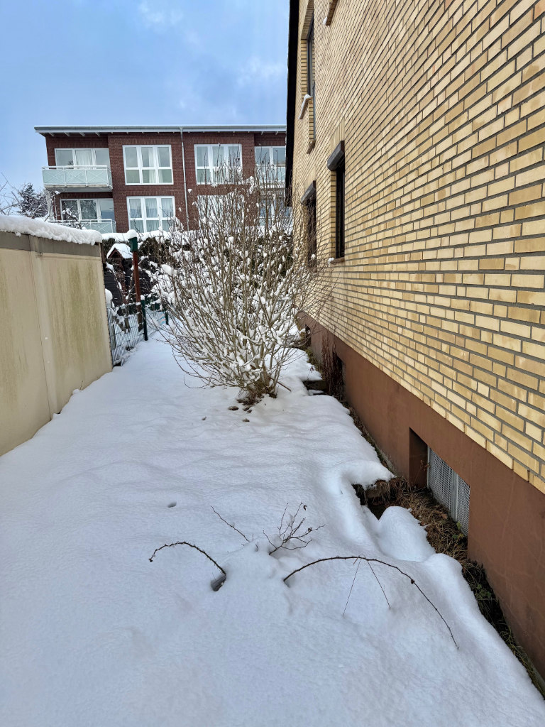 Das gepflegte Wohnhaus mit nur vier Wohneinheiten befindet sich in einer sehr ruhigen Wohnstraße, Tempo-30-Zone, in Lohbrügge. Der Vorgarten besteht aus Rasenflächen mit Pflanzkübeln.