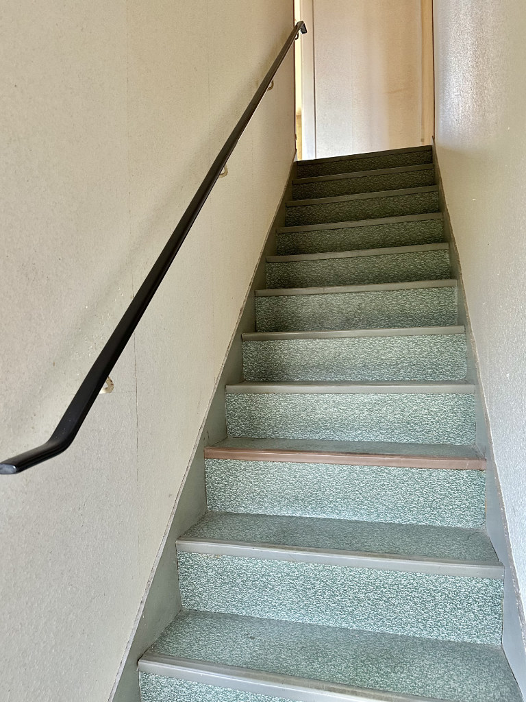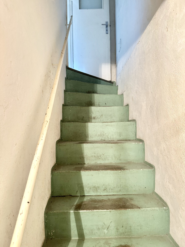 Im Eingangsbereich geht es rechts über geschlossene Treppen in die oberen Etagen und den Keller.
