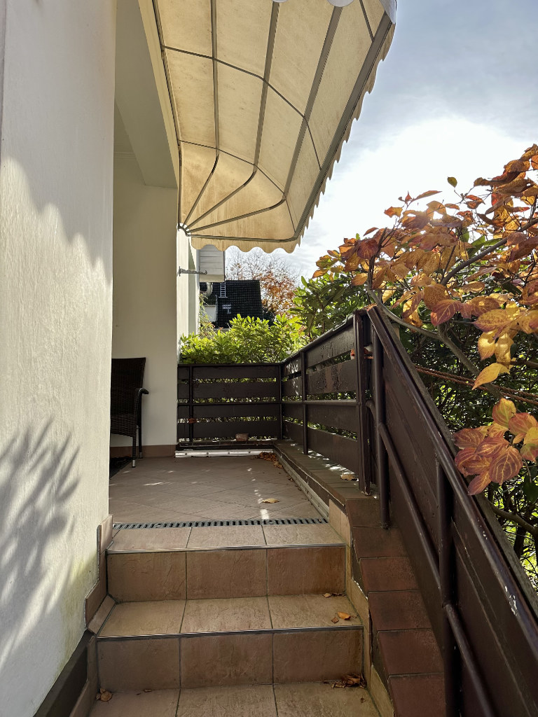 Vom Essbereich gibt es einen Zugang zur gartenseitigen Veranda, die angenehm vor Wind und Regen geschützt ist.