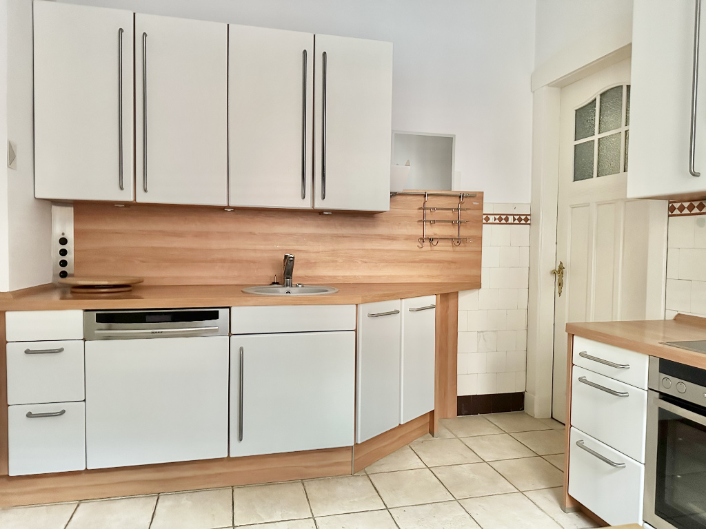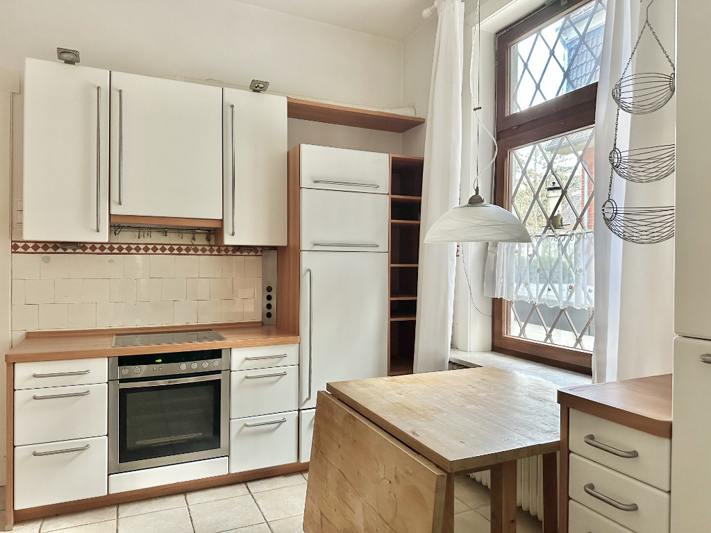 Daneben befindet sich die moderne, helle Küche, die über einen Vorratsraum ebenfalls Zugang zur Veranda bietet.