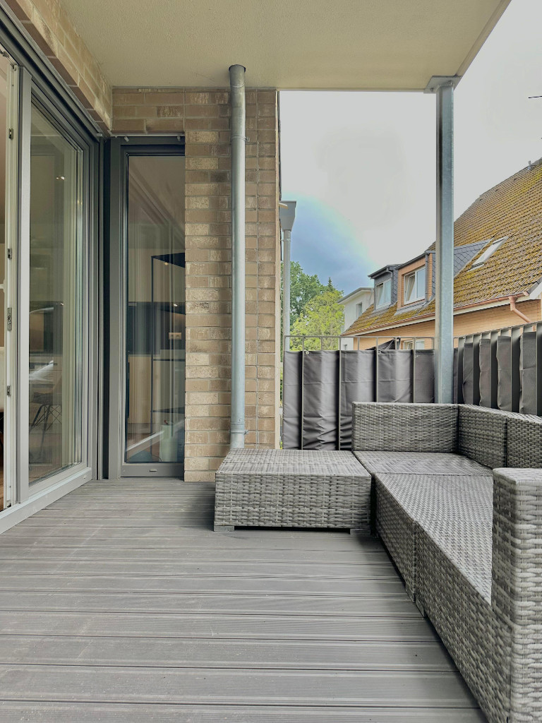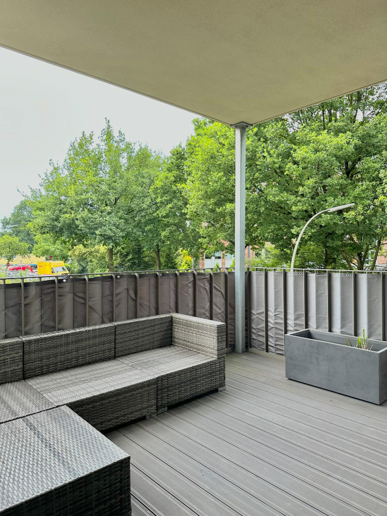 Der Wohnbereich wird durch breite bodentief verglaste Fenster-/Türelemente angenehm von Tageslicht durchflutet. Zudem gelangt man hier auf den großzügigen Süd/West-Balkon.